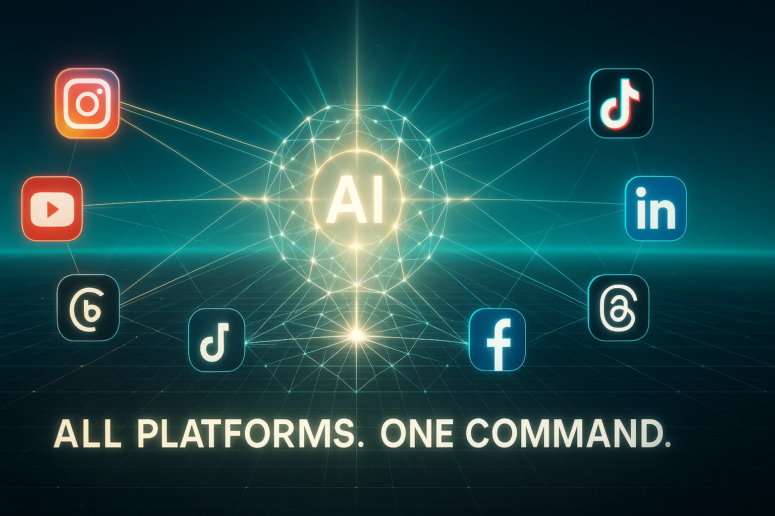 The system adapts each post’s format, dimensions, and captions automatically to fit the native environment of every platform.